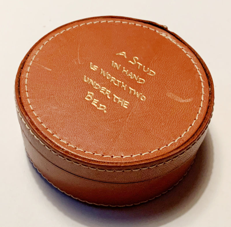 So after going round and round this small store, I bought one little thing, just one–a vintage leather stud box. Not valuable, but kinda neat with only a few light scratches.