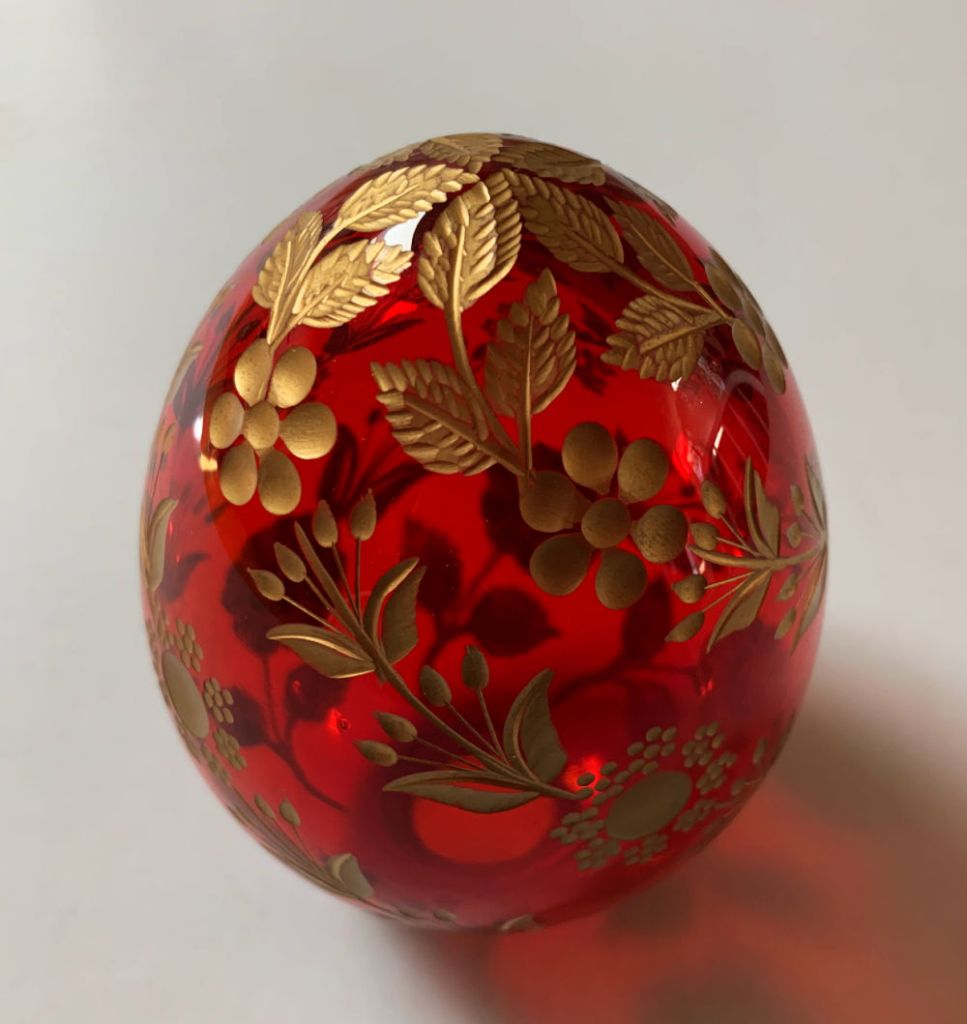 I’m not usually drawn to pretty-pretty objects, but this Russian Faberge-style glass egg was too good to pass up. Can’t you picture it on a mantel at Christmas time? If it’s not sold by then, it will be on my mine next to my brass candlesticks. Sold and listed prices for these eggs are all over the place, so I’ve listed mine at what I think is a fair, middle-of-the-road price
