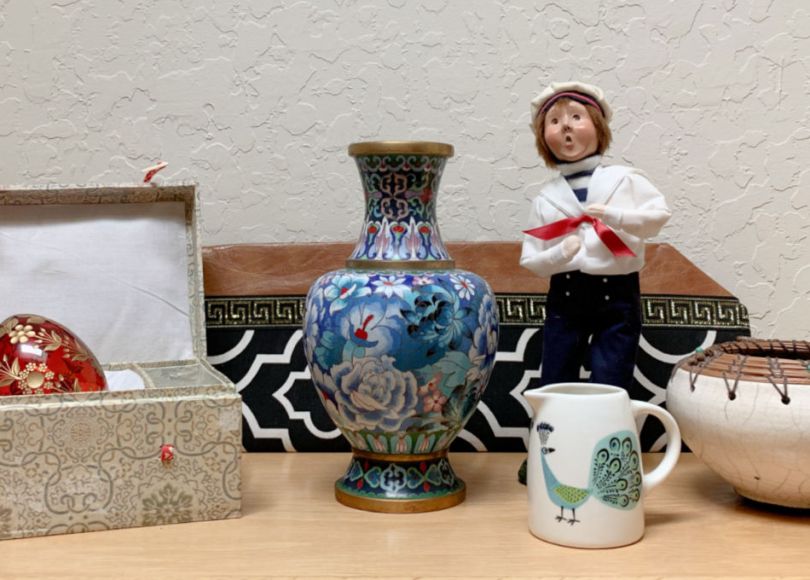 I spent $30.94 total for the: raku and pine-needle pot, Russian glass egg, Byers’ Caroler sailor, blue cloisonne vase, Peacock creamer, and Cameo de Bore purse. These items represent three separate thrift store visits and about 90 minutes of in-store hunting time. My items tend to be long-tail and these are no exception. Yes, some of these may sell within a month or two, but many will likely be around for a year or more. And while that’s not ideal, I’ve learned to be patient!