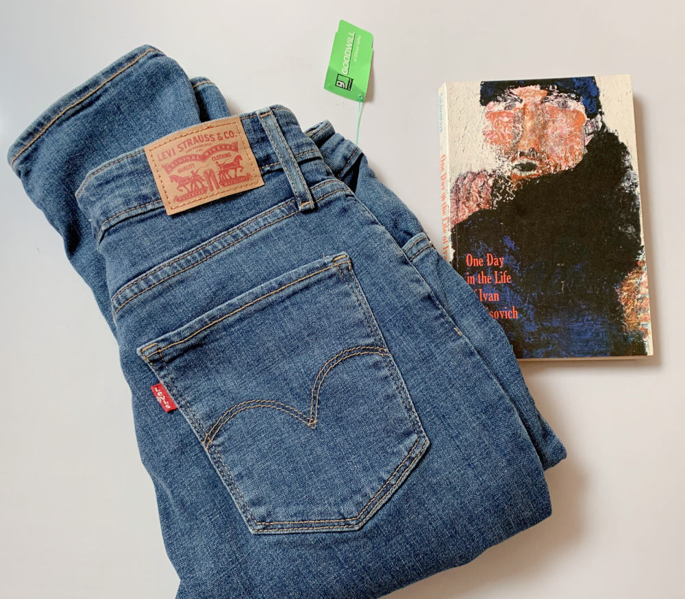 And for myself I found a pair of Levis for $6.99. They are a size larger than I normally wear, but I thought these might be perfect for an upcoming six-hour flight. (Strange, even though I hardly eat anything on flights, I always feel 10 pounds heavier when I get off the plane!) And this 1963 edition of “One Day in the Life of Ivan Denisovich” by Aleksandr Solzhenitsyn. Maybe I’ll save that for the flight too!