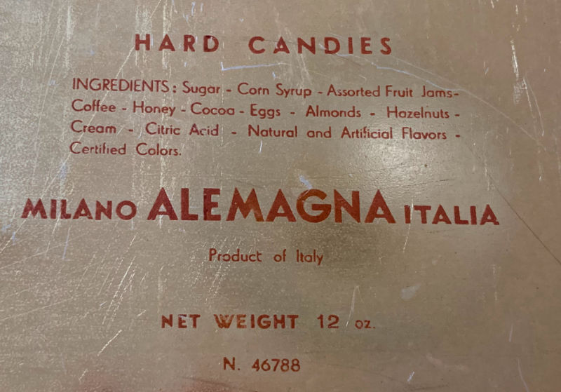 I got two vintage Italian cookie/candy tins from two different sellers. This one was free! A bit beat up, but what amazing graphics. Reminds me of Cinderella.