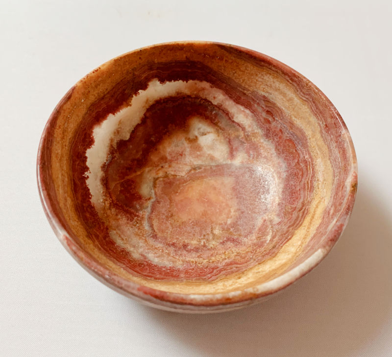 Love this little stone bowl. It has translucent areas and is likely alabaster. I’ll be keeping this for a while! Wouldn’t it look pretty with a little tealight burning in it?
