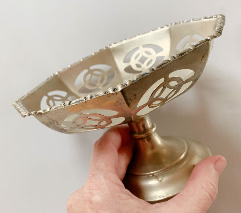 And this Art Nouveau-era EPNS bon bon dish by Slack & Barlow (1897-1994), out of Sheffield, England. I know that silverplate items like this aren’t worth much, but it’s an old, beautiful, well-made thing and I didn’t want it to get trashed. Some things are just worth saving.