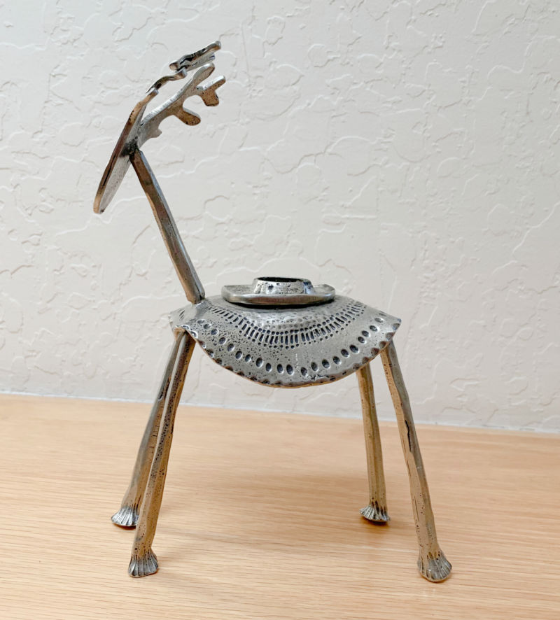 I’m not sure what to make of this metal Christmas reindeer candle holder. It has no marks of any kind but is certainly quirky. But is it worth anything? I don’t know. I’ve been looking online for similar pieces (including an image search) and so far have come up bupkiss! Anyone recognize this? (Paid $3)