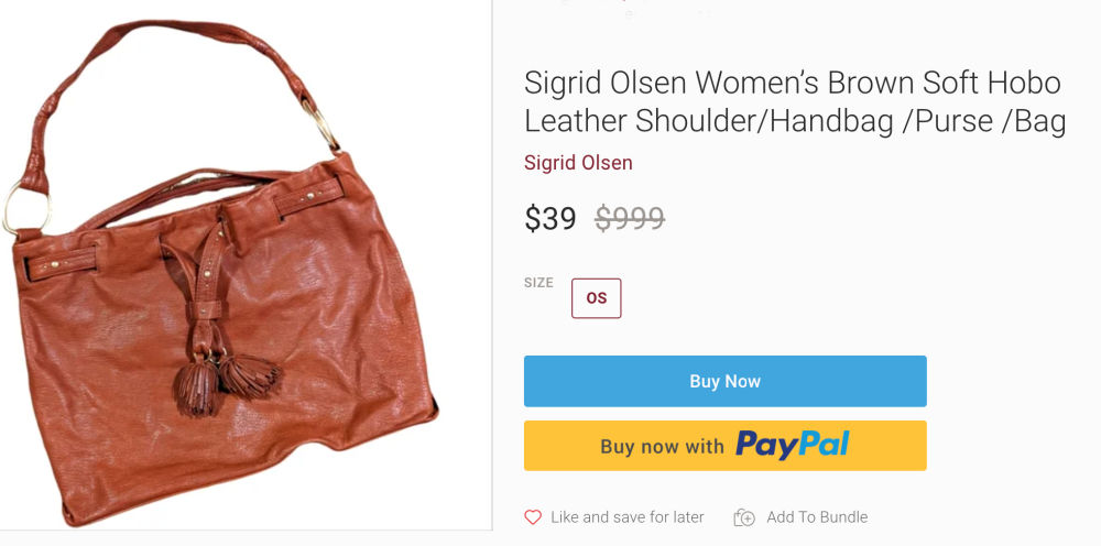 And it was a typical thrifting experience…going round and round. Nothing quite good enough or priced too high. I was tempted by an olive green Sigrid Olsen leather purse at $26 and change, but the resale on these just isn’t strong enough. Here’s a similar one on Poshmark.
