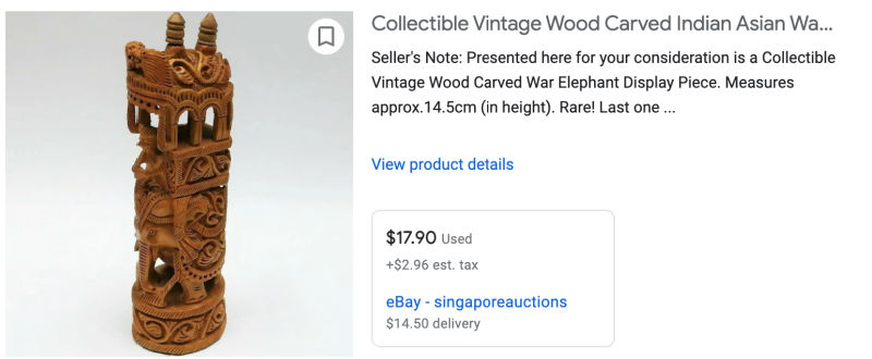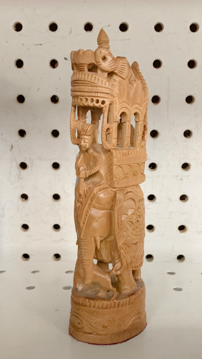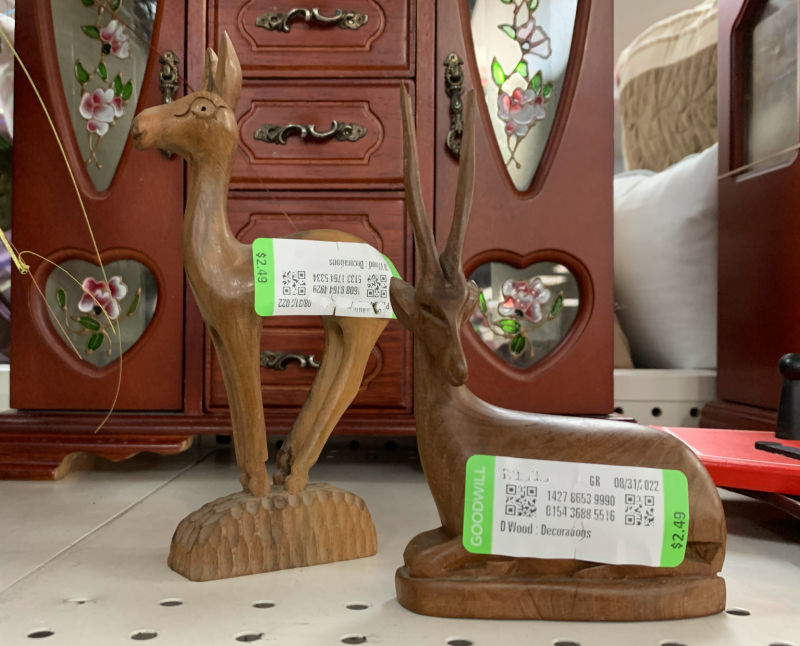 I put this carved wood elephant thingy in my basket right away, but changed my mind right away too. It wasn’t old enough or good enough. No, no, no. Plus it was the kind of thing that would linger forever in my store. (Priced at $3.49.)