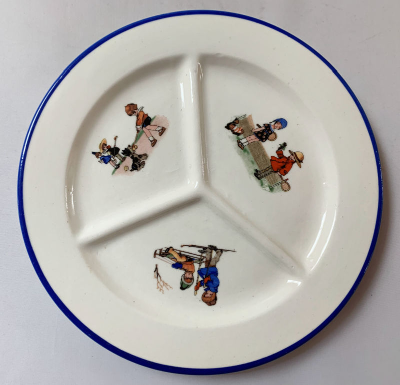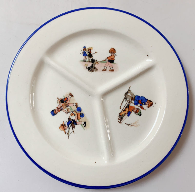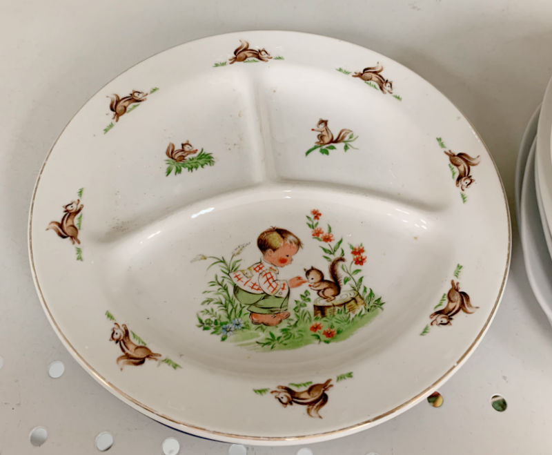 I think someone must have donated a box of vintage baby plates because more of them have shown up on the shelves lately. This 1950s ceramic made-in-Japan plate was a cutie, but just wouldn’t resell for enough.