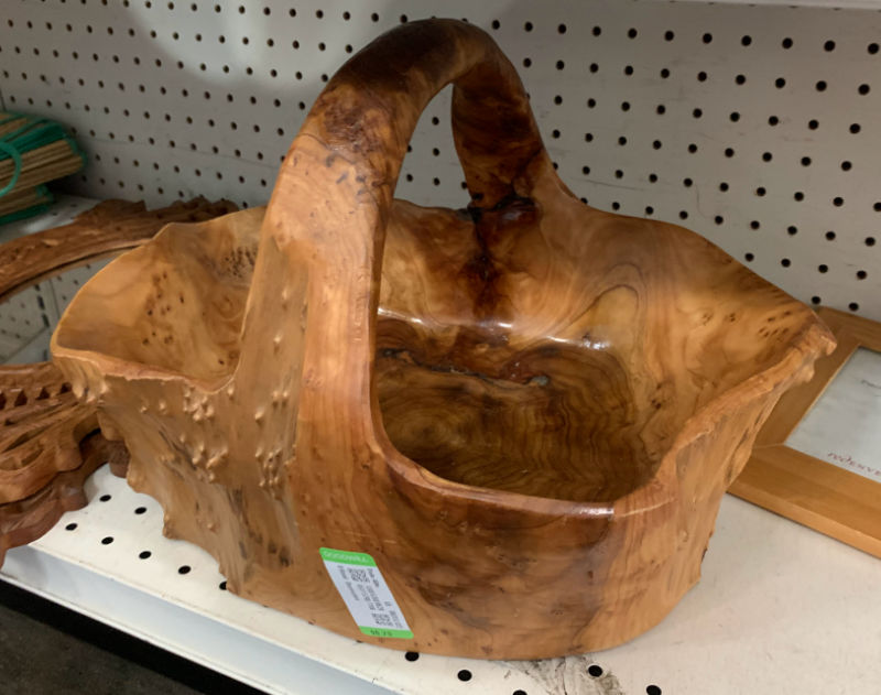 This huge burl wood basket was a wowser and only $6.79, but I had a stern talk with myself and in the end said no. Just too big.