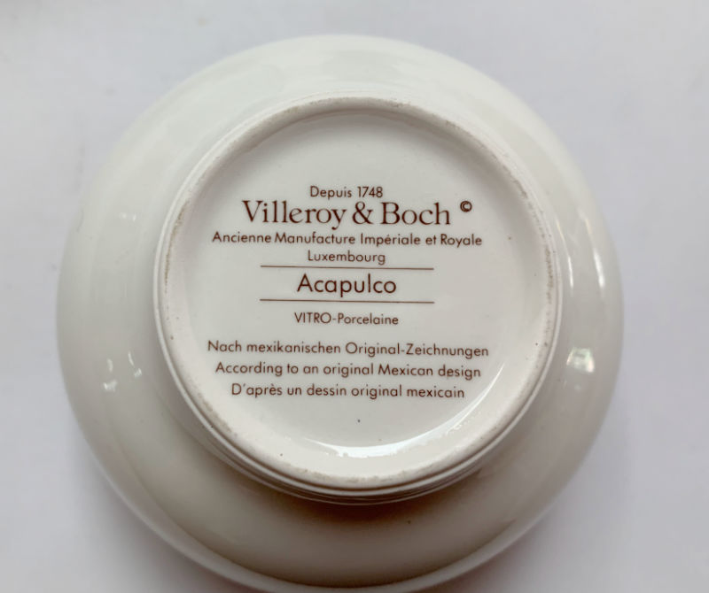 But there was a packed new merch cart and when I spotted these small porcelain bowls I had a BINGO moment. I couldn’t remember who made them but I knew they were good. Really good. Turns out they were also made by Villeroy & Boch in the delightful “Acapulco” pattern. This pattern debuted in 1967 and production ended in 1994. I’ll list the pair for $90.