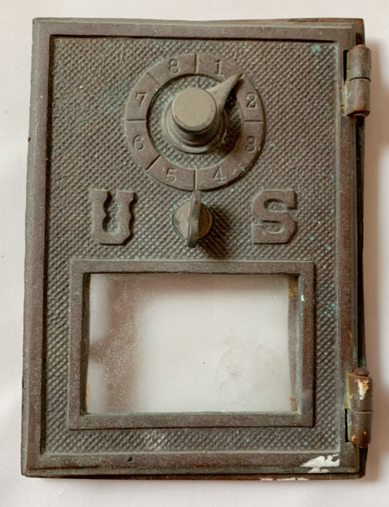 The other thing I added to the mantel was a very old brass post office box door to add a little more “weight” to the right side. I’ve just listed this in my Etsy store, but don’t really want to sell it. I adore architectural salvage like this.