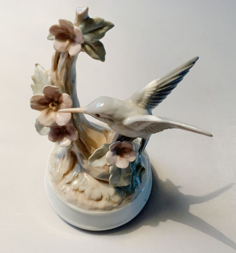 Sadly, the vintage Otagiri hummingbird music box that once adorned the top of their wedding cake would not only be a challenge to ship with all breakable parts sticking out everywhere, but it doesn’t resell for much ($7-20).