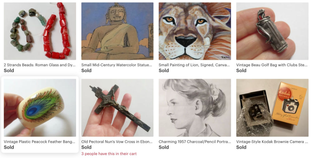 I was pleased to have four artwork pieces sell as they are slow sellers. Especially the sweet 1957 charcoal drawing of Leola. It came from the saddest liquidation estate sale and later I discovered the house also had a sad family history. (Paid $1. It sold for $60.)