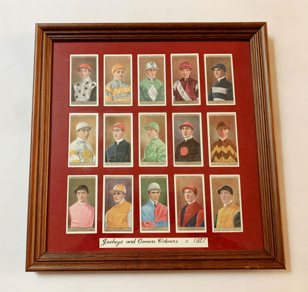This framed collection of 1927 Ogden Cigarette jockey cards was too quirky to pass up. Even if the subject matter doesn’t excite you, you have to admit it has graphic appeal and would be a great conversation piece!