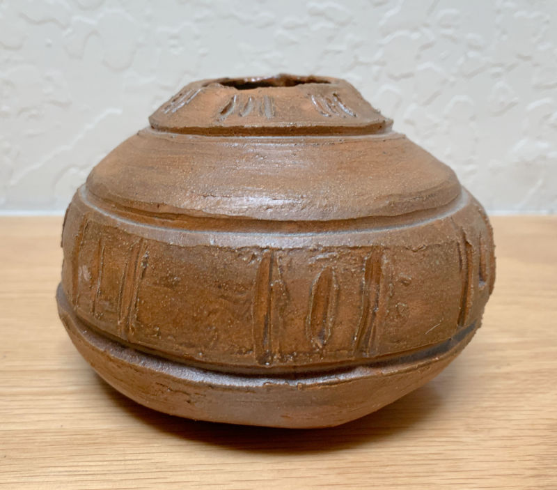 Let’s be frank–this is a student’s piece. A little too heavy with a bit of a wobble and rather primitive. But intriguing too. Almost tribal looking. Can’t you imagine some archeologist pulling this out of the ground?