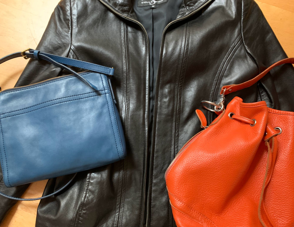Over the years thrift stores became a great source for finding store inventory, including antiques and high-end items. Plus I found amazing things for myself! My favorite soft black leather coat, which fits me perfectly, was a $14 find. My blue like-new leather Fossil cross-body bag was $10. I have a well-made, no-name orange leather bucket purse that was $7 and I get compliments on it all the time.