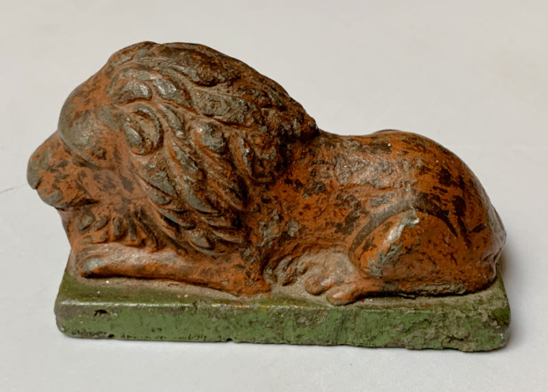 The same seller had this small, heavy (almost four pounds) cast iron lion door stop at $25. And again I know nothing about door stops but Leo appeared to have age and I liked him. I dithered and left without buying him, but came back later 20 minutes later and offered the seller $20 and he was mine.