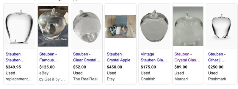 So I’m not sure what I’ll list mine for yet. But I can say it was so exciting for me to find a piece of Steuben glass in the wild at my tiny local thrift store. And so unexpected. This is one of the reasons I love this biz. Why I haunt thrift stores, estate sales and the like…for finds like this.