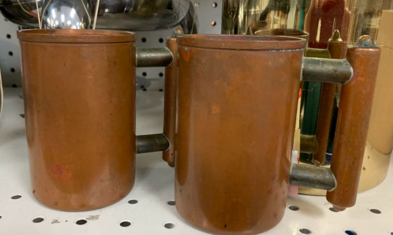 I had these two older copper and brass cups in my cart from the get go, but the insides of both were quite corroded and at $5.89 each, I just wasn’t sure. In the end I left them behind, but I keep thinking about them. Gosh I think I should have bought them. [Drat, they were gone by the next day.]