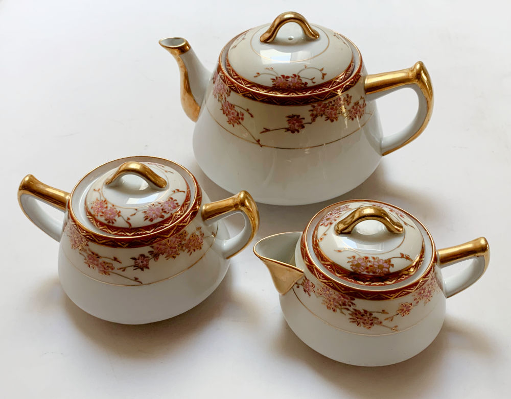 This Japanese tea set was one my dad bought in Japan in the 1950s for his mother. Eventually it passed to my mother who never used it that I remember. So one year they brought it out to me. While I did unwrap the dessert plates and have used them, the rest of the set remains as my mother wrapped it over two decades ago. (For some reason she swaddled everything in plastic wrap!)