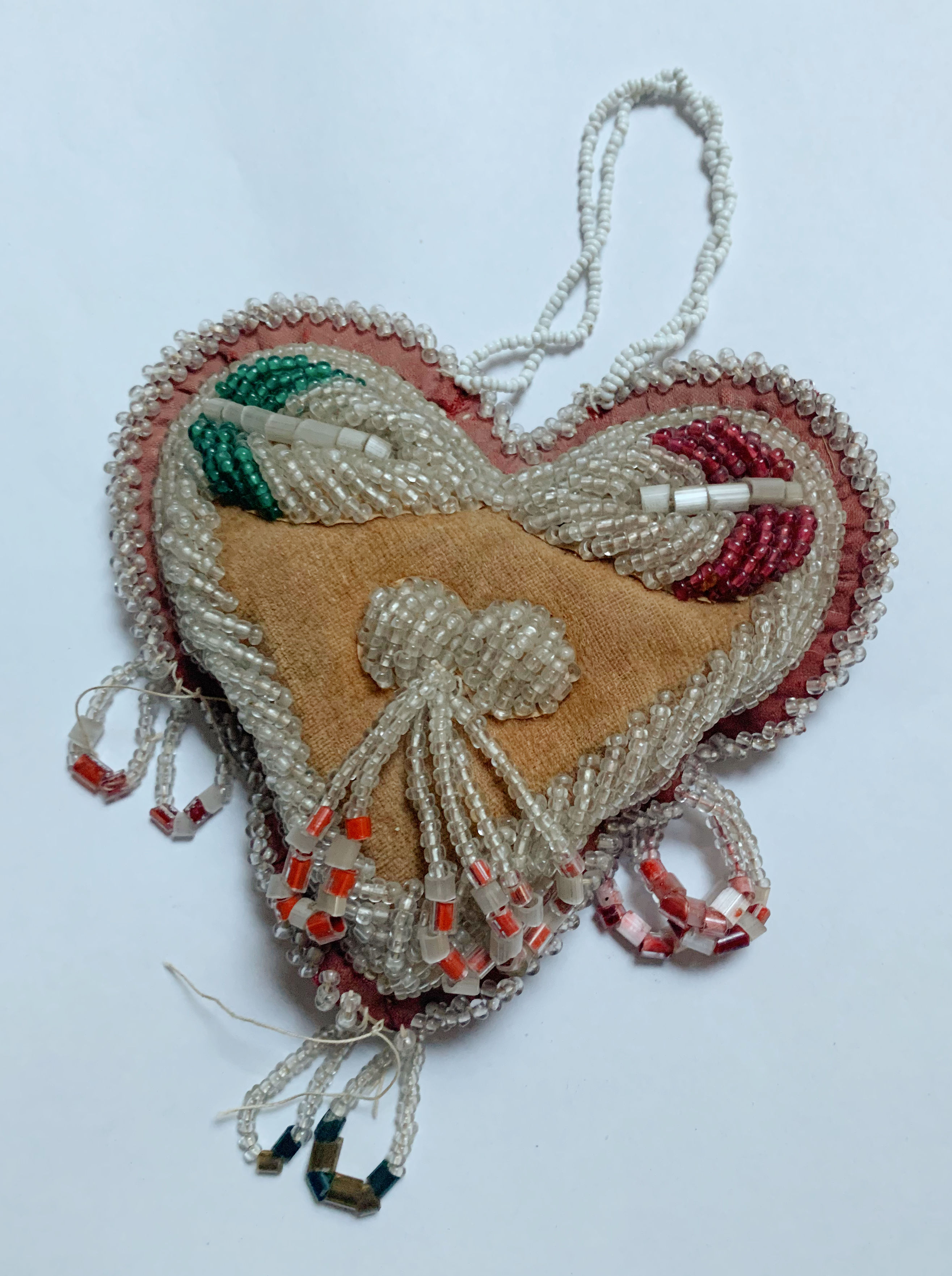 I’ve sold a native art (likely Nootka) basket and have an Iroquois beaded whimsy/pincushion in my store. Both were made for the tourist trade.