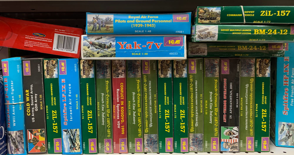 I was close to buying some of these military plastic model kits (half were sealed). They all seemed to be made by ICM in the Ukraine, but I couldn’t find a date on them. Most were priced between $6 and $7. I collected a pile of four WWII fighter jets from various countries and researched them in the store as they were absolutely out of my wheelhouse. In the end I decided to leave them behind. There didn’t appear to be enough profit margin. Though I did think there were likely some in the group that could be worth a bit. I decided to let someone else make that score.