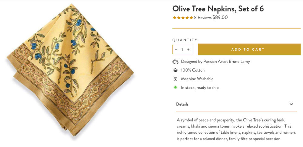 First I grabbed this group of five never-used cotton napkins with the intention of keeping them for our own use, but I discovered this brand, Couleur Nature, is a Paris one! Oh la la. A group of six sells for $89 retail! So I’ll list my five for a more modest $48.