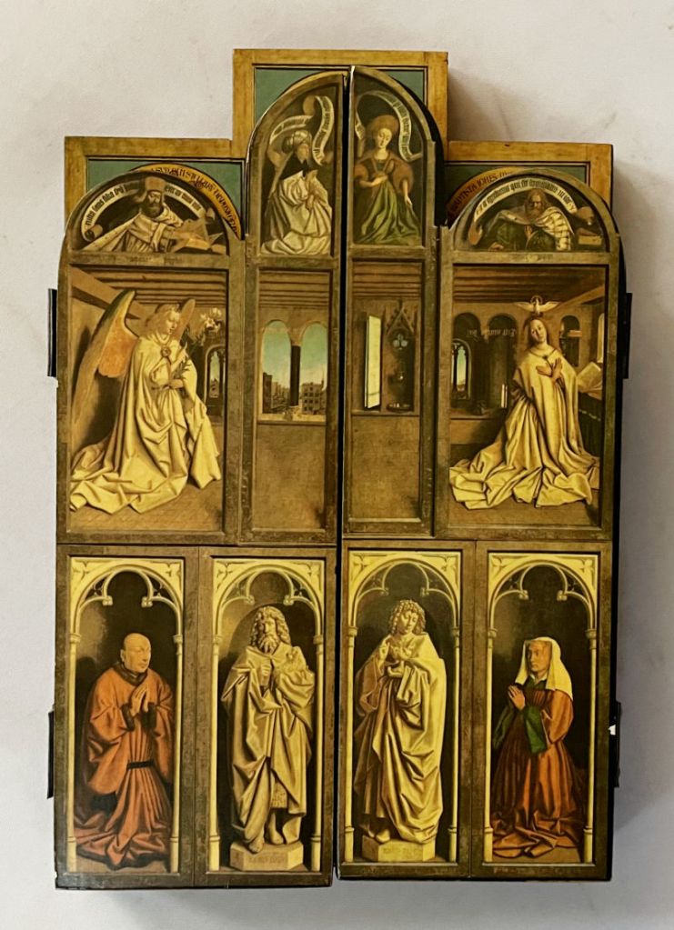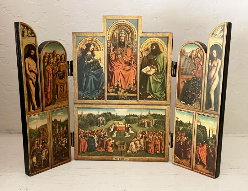 This small wood triptych was so attractive. How could it not be when it’s of the world famous Ghent Altarpiece?! But it’s just printed images, not a hand-painted rendition, so not valuable. Still it would be perfect for a home altar.