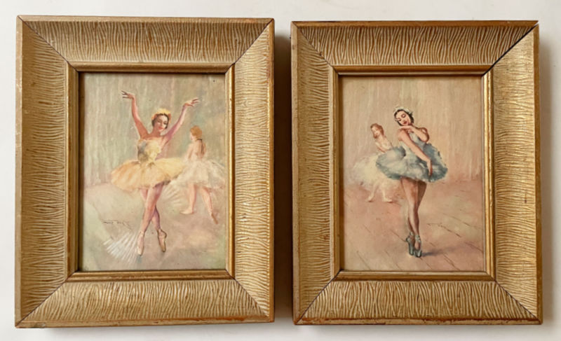 My first two finds were this pair of small 1950s framed ballerina prints. The carved gold-painted wood frames are quite nice and worth repurposing!