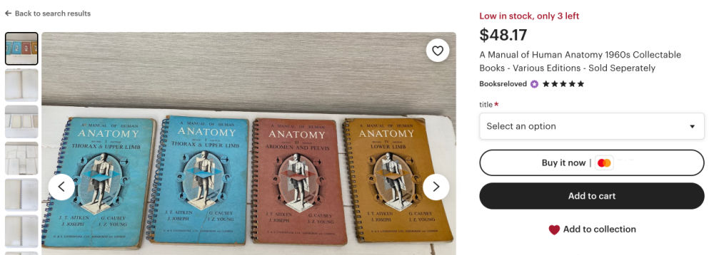 CAVEAT: I am not a “serious” book buyer/seller. I don’t think I could be. I’ve seen too many aggressive/rude/cliquey ones to know this is not my tribe. I buy and sell books because I am a bibliophile, pure and simple. I love books. I don’t google them when I’m sourcing because that would kill the fun. I have a slim knowledge of what to look for and what will sell for me. I prefer books that are 40 years or older that include one or more of the following: quirky subject matter (including anatomy, astronomy, cookery, art), illustrations, author signatures, first editions.