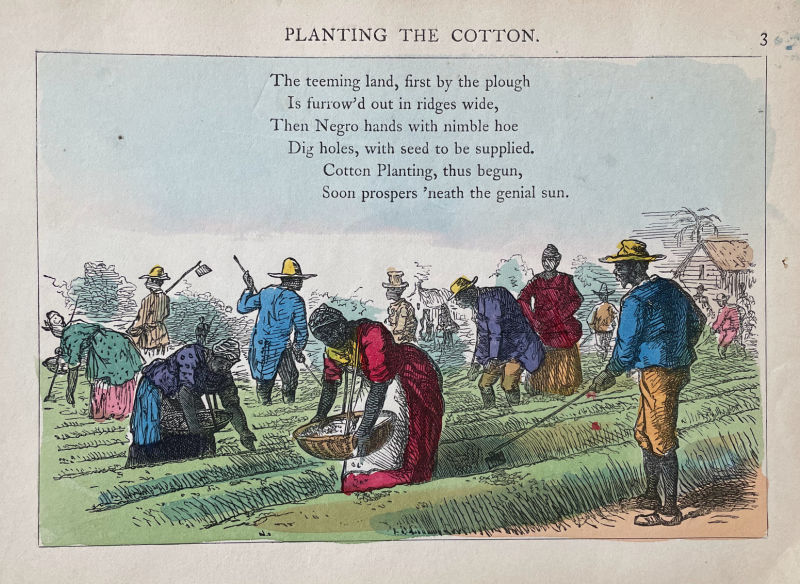 Sadly there are quite a few pages about the cotton industry which at that time relied heavily on slave labor. Just after this book was published, the U.S. Civil War started.