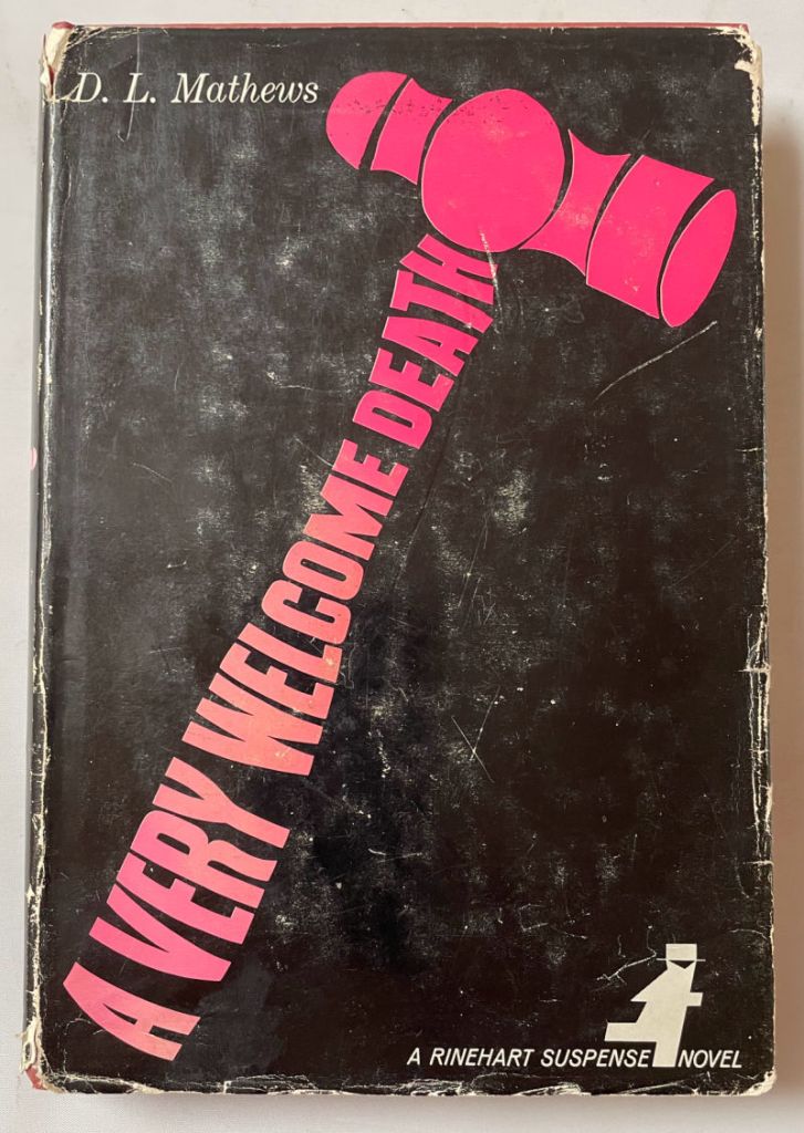 I bought this 1961 “A Very Welcome Death” mystery book for myself, but I’m not finding another copy for it anywhere online. How is that possible? The author, D.L. Mathews, only wrote three books. Is this one valuable? Hmmmm. Sometimes this sort of “mystery” drives me crazy. Is it a $10 book? $100? More? Something to research! [Turns out I was searching for this book with the author’s name misspelled…hence no other listings. It’s not rare…well poop.]