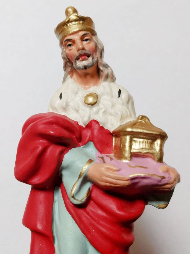 Surprisingly I sell a fair number of nativity pieces. Not whole sets, just random pieces. I am particularly fond of the plaster wise men made in Italy. I sold this fine fellow years ago ($14) and rather miss him! Before he sold he was nestled in a candlestick “forest” on our mantel.