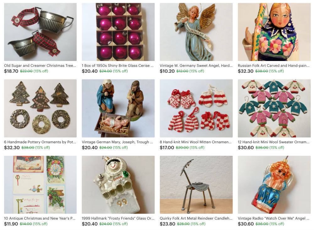 So I decided to put all my Etsy Christmas stuff on sale through July though I don’t have that much to offer. Not for lack of trying. I just don’t find that many vintage pieces worth buying. In most of the nearby thrift stores, holiday decor is not on offer all year round. You may get the occasional piece on the shelves but not much.