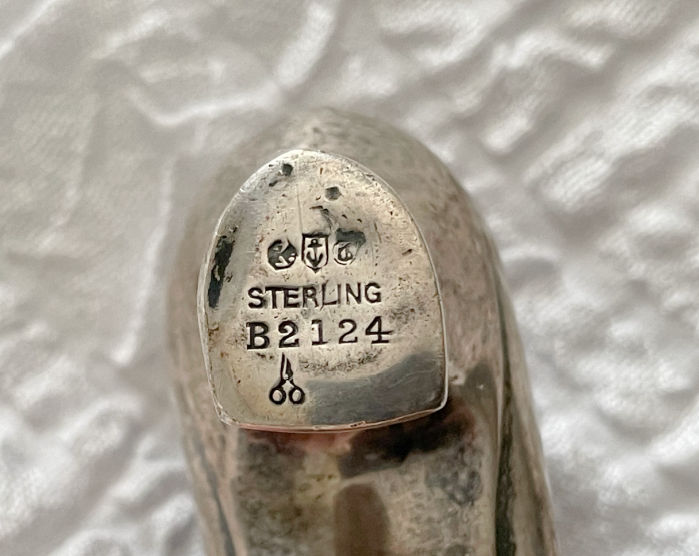 But the first thing I bought on my trip (and the most expensive) came with a backstory. As we were driving around our hometown I noticed that my cousin-in-law Kurt’s store was open! The surprised me because he died several years ago and I know they liquidated his stock. Well, we popped in and it turns out that one of Kurt’s good friends (also in the reselling biz) took it over. We had a good natter with him and I took a look at several of his sterling silver smalls. He only takes cash so I needed to limit my purchases. In the end I bought only one thing…this antique Gorham shoe pincushion. Turns out it had once belonged to Kurt and the current proprietor bought it from him. He offered it to me at the price he paid Kurt…which was more than I would normally spend on it, but there should be some profit left in it.