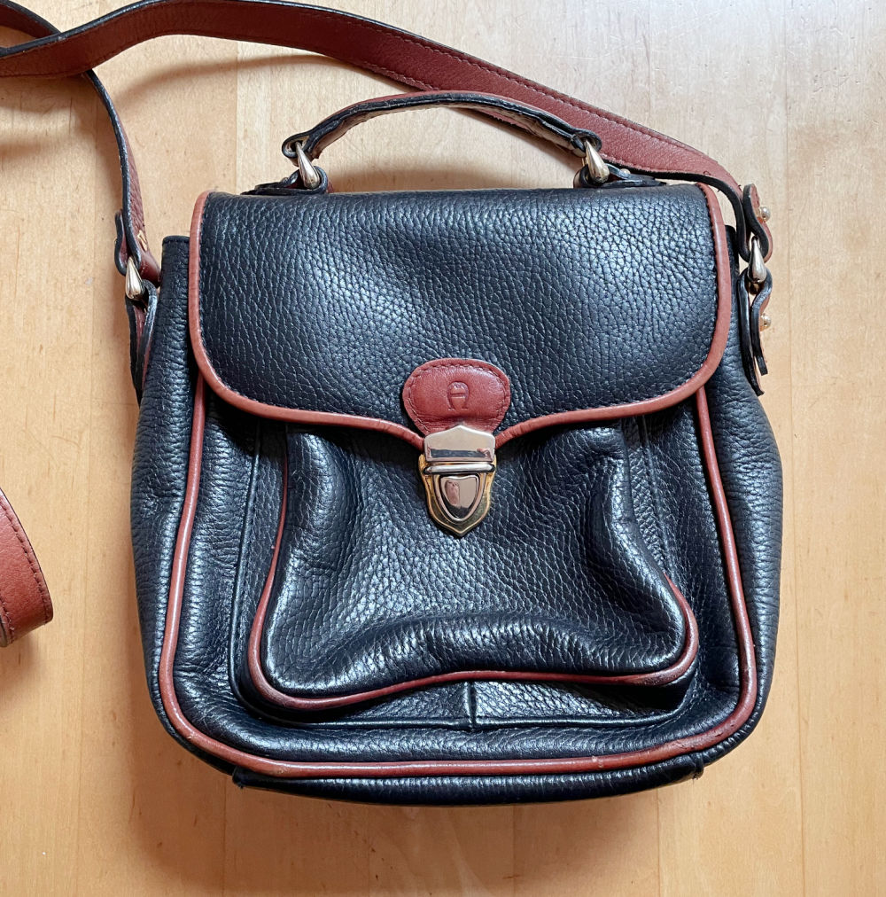 Sadly today’s thrifting jaunt to two Goodwills for their 35% Labor Day sales was, for all purposes, a bust. Both stores were jam packed with shoppers and the few things I was mildly interested in were all chipped or broken in some way. Sigh! That’s how it is sometimes. But I did decide to take a chance on this small Etienne Aigner leather cross-body bag. Most Aigner purses don’t resell for much though it is considered a luxury brand. Still I rather liked the look of this one. (Coach and Dooney & Bourke have similar bags.) I’ll likely list it for $40.