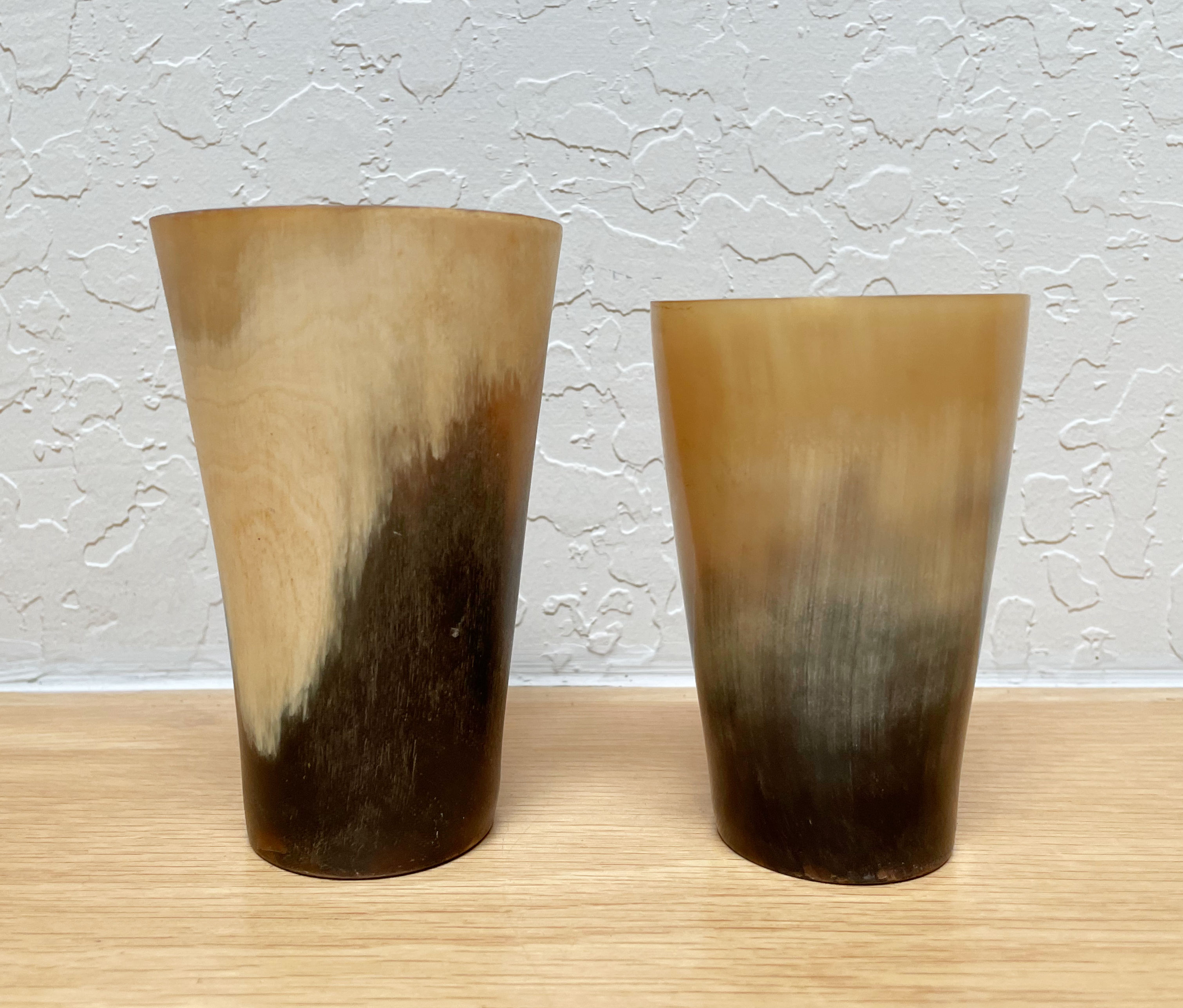 I didn’t have to go far for these antique Scottish horn cups. They are part of my personal collection that I’ve been slowly downsizing. I bought these from a gal who used to take regular buying trips to Scotland. At 4″ to 5″ they are perfect for a bit of mead or beer. (I’m keeping my three smaller horn whiskey drams.) Not sure what I’ll list these for, but my initial research shows that they seem to have appreciated nicely.
