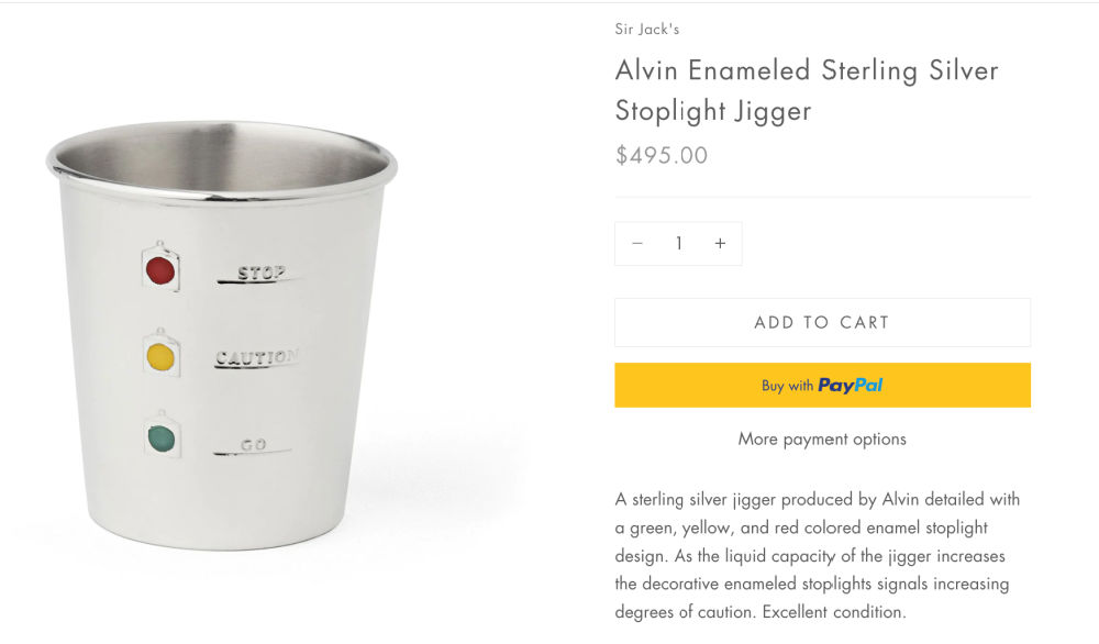 So these two items are all I have bought for my biz the last seven days. That’s gotta be a record! But that’s been okay too because it encouraged me to let go of more things from my collections–like this mid-century modern Alvin sterling silver stoplight jigger with all of its enameling intact.