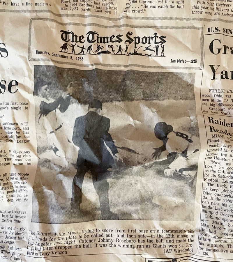 Happily I was invited back to that big private pick after the cancellation last week and was super excited to head out for this appointment. (I literally dreamt about it ALL night!) I was jazzed. The items had been stored since the 1960s (wrapped in crumbling newspaper) so all were vintage and a number antique. Even the paper scraps were interesting…here’s Willie Mays in 1966.