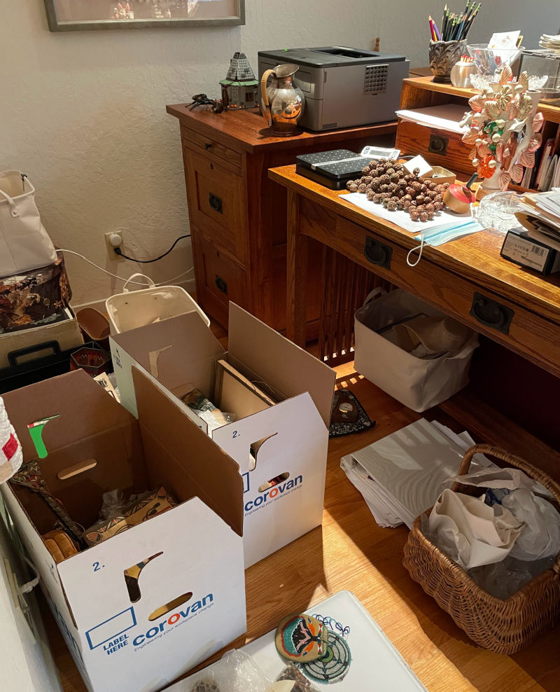 Now my office area in our family room is a complete shambles. It was only a shambles before. Now it’s complete!! And I detest when I let it get like this.