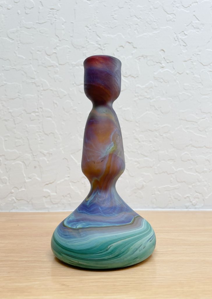 I did pop into my neighborhood thrift store for a quick minute two days ago. Ran into my thrifting friend Diane and we had a good natter. At the store there were things I would have bought if I didn’t have a backlog of inventory. In the end I did buy this hand-blown glass candleholder made in the West Bank known as Phoenician glass (artisans add substances to the molten glass to create a range of colors). It was just so pretty. Not super old or valuable, but a nice thing. Perfect as we head into longer nights in the Northern Hemisphere when one is inclined to light candles.