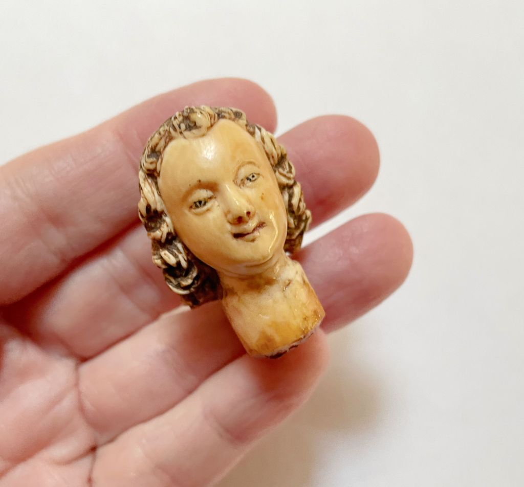 This small carved vegetable ivory head. It came with a very broken body so I decide to sell just the head! (An accompanying note said is was from Manila 1898, acquired during the war.) Will anyone want this? I think so–it’s perfect for a little curio display. But how to price it? In the end I settled on $24–it’s only a remnant but it has age, provenance and quirkiness.