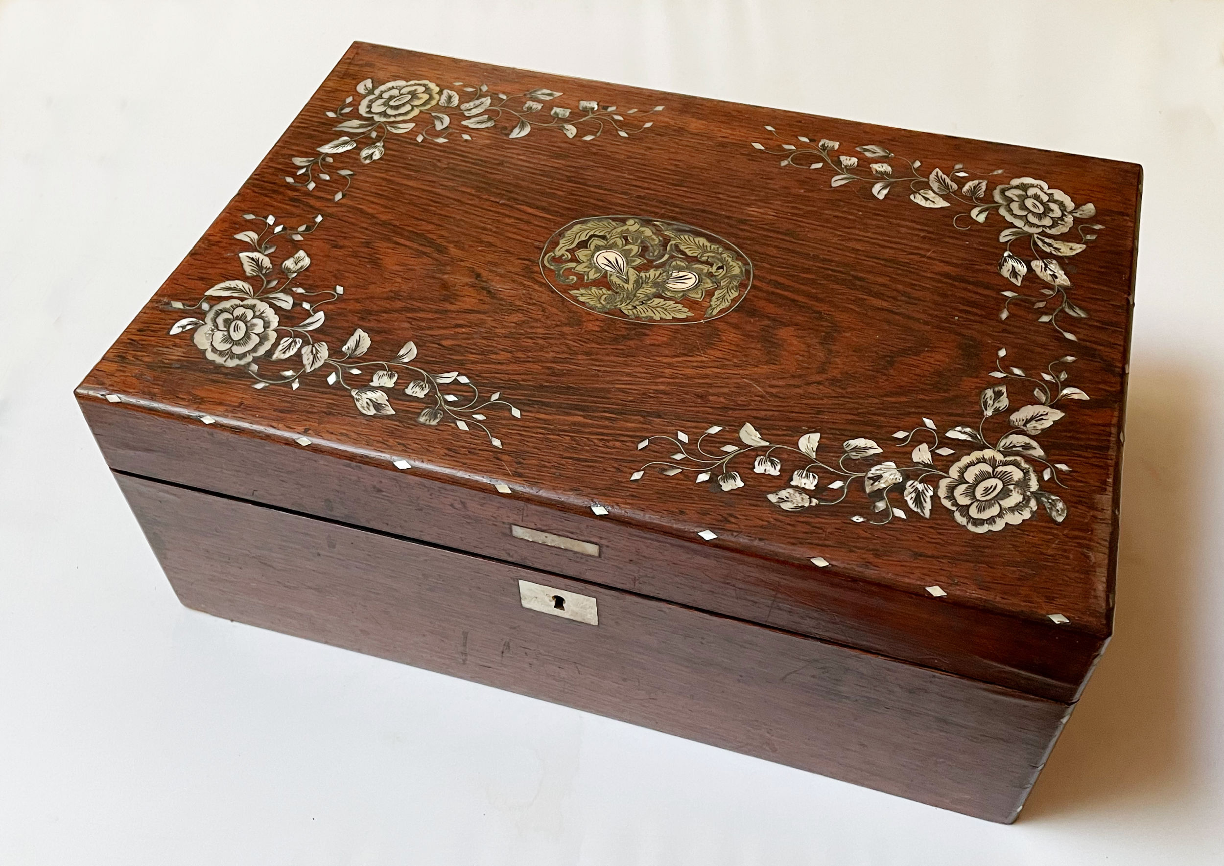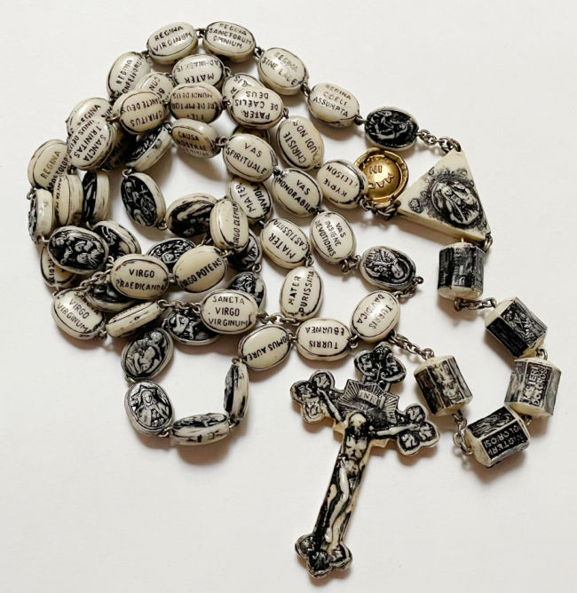 But that huge private pick in the fall (total spent: $970) was a once-in-a-lifetime opportunity that still feels unreal to me. I’m gobsmacked at some of the items from that estate. (They’ve been selling well and I still have more to list.) Here are a few of my favorites: inlaid Victorian-era wood box (sold for $148), Victorian-era woven hair pieces (4 lots sold for a total of $188), three carved bakelite bangles (unsold at $125), Civelli rosary (sold for $125) and a colorful piece of an old mummy case (priceless! I’m keeping this).