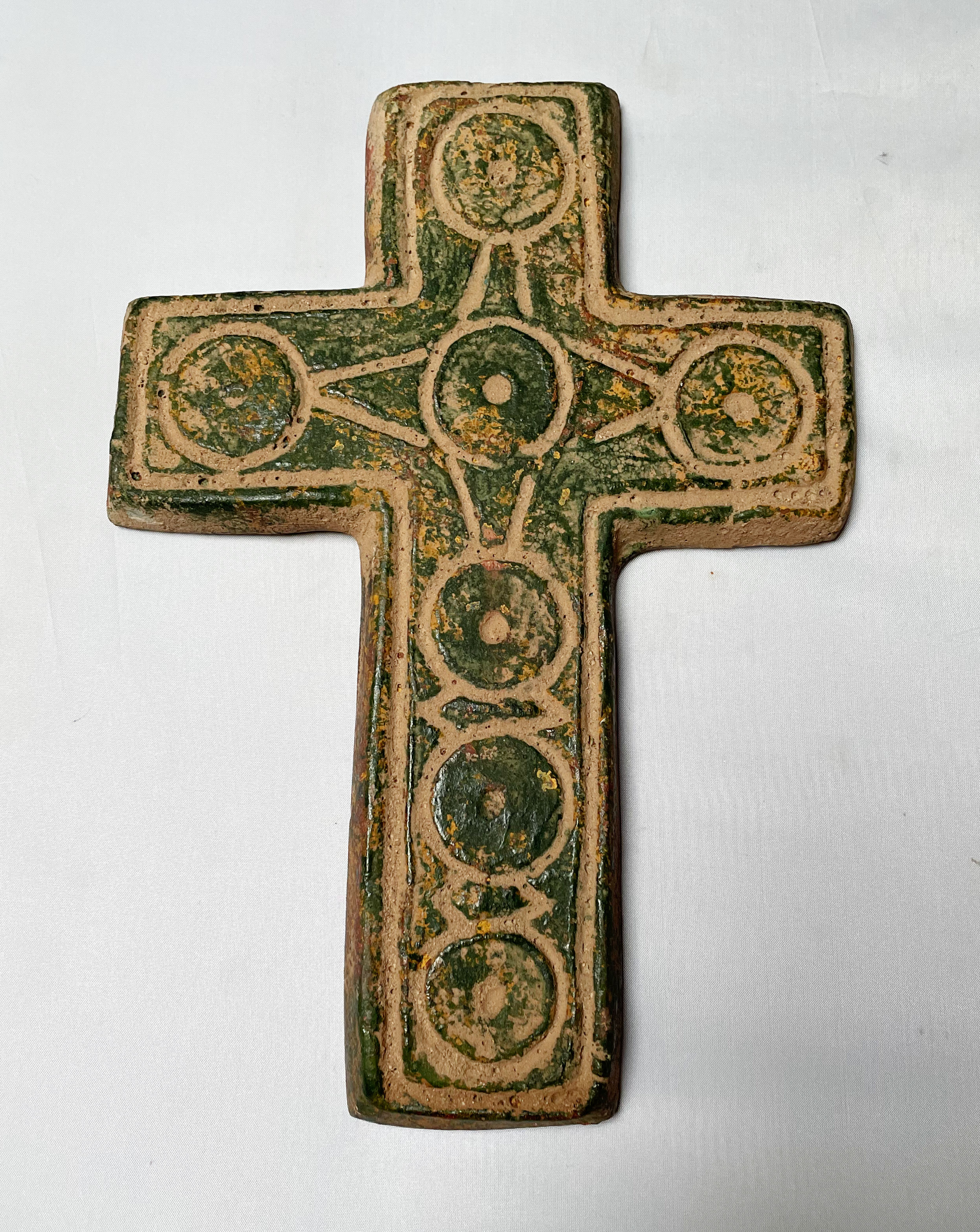 - Primitive Terracotta Glazed Cross from Mexico