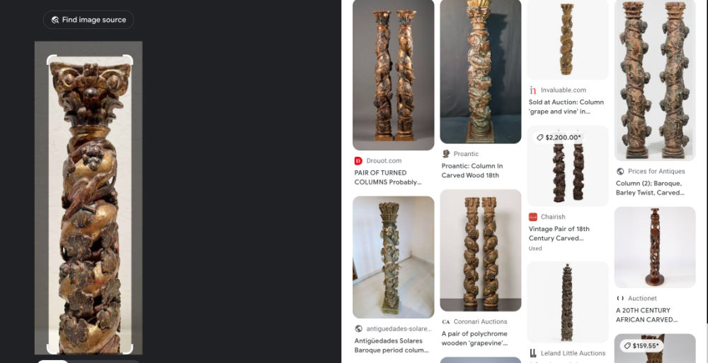Back at home I had difficulty getting information about my gilded decorative column (about 15″ tall). With Google Image Search there was no direct match.
