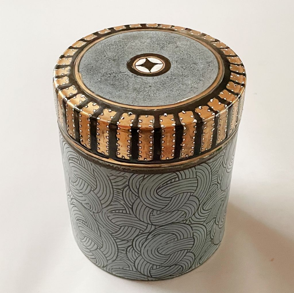 This pretty ceramic jar by Kinder-Harris is dated 1989. I normally don’t like ’80s decor items, but I did this one! Prices for Kinder-Harris items are all over the place so I went for somewhere in the middle.