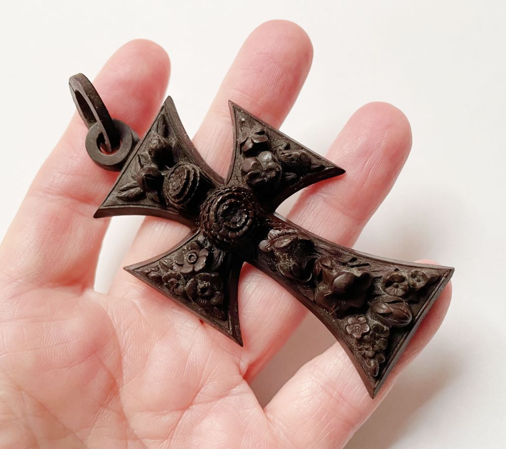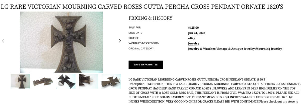 These old gutta percha pieces can be valuable. Here’s a cross similar in size and design to mine that sold for $425 last year.