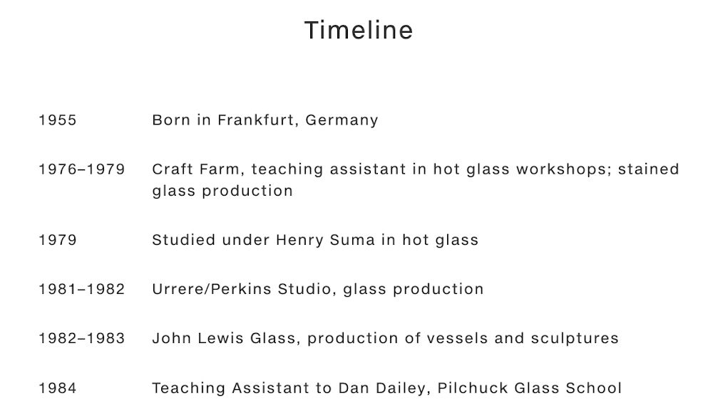Now there was a glass studio by the name of “Urrere Perkins” with items made by Danny Perkins. Here is a partial timeline of his career from Artnet.