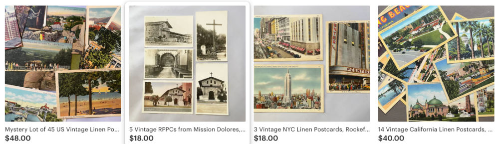 I think I’m sitting on a fortune in linen postcards! Well, as my mother used to say, “Not enough to retire on,” so not really a “fortune”! I do have hundreds though. I love linen card’s colors. My son claimed the 1929 NY World’s Fair ones though. I like those Mission Dolores ones. I have a Manuel Valencia of Mission Dolores. He painted the same view multiple times with small variations. I think my grandmother bought it at Gump’s.