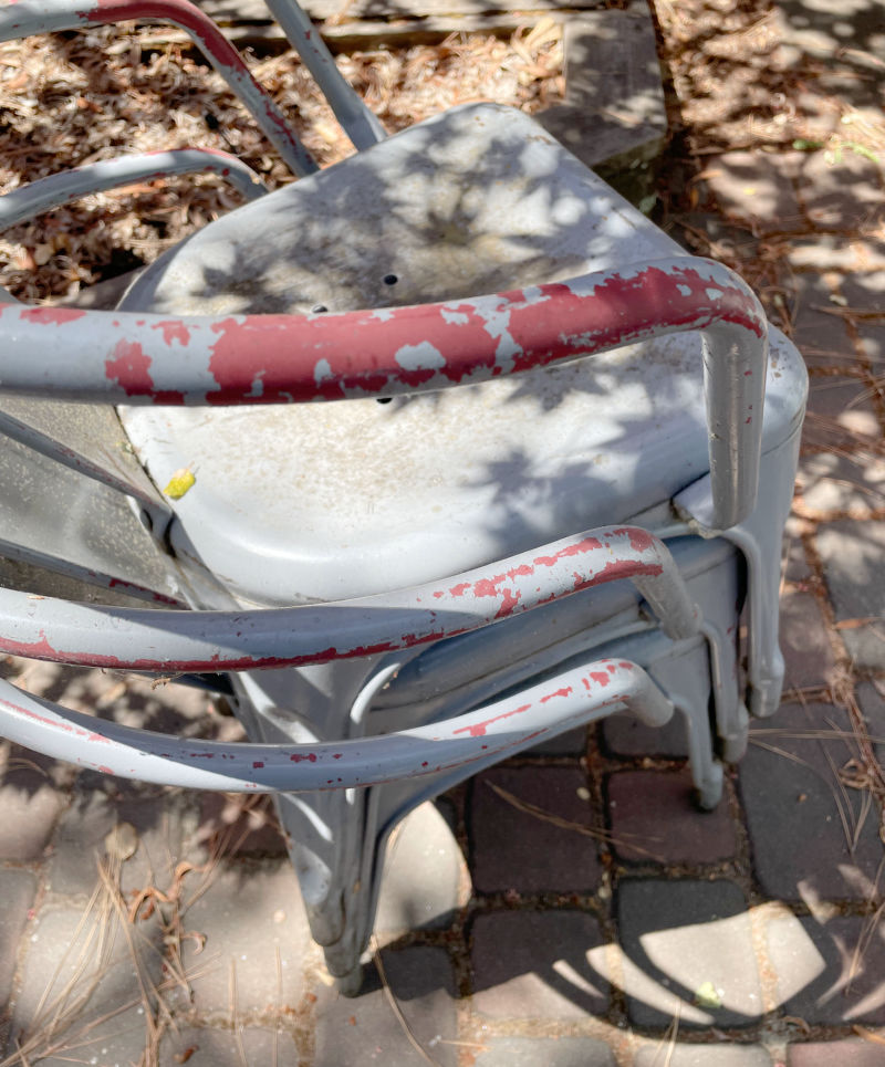 But the other weekend I found a group of five metal chairs listed by a member of my local Buy Nothing FB group. They were not the look I was going for and obviously needed some serious TLC too, but I thought they had potential and they were free!