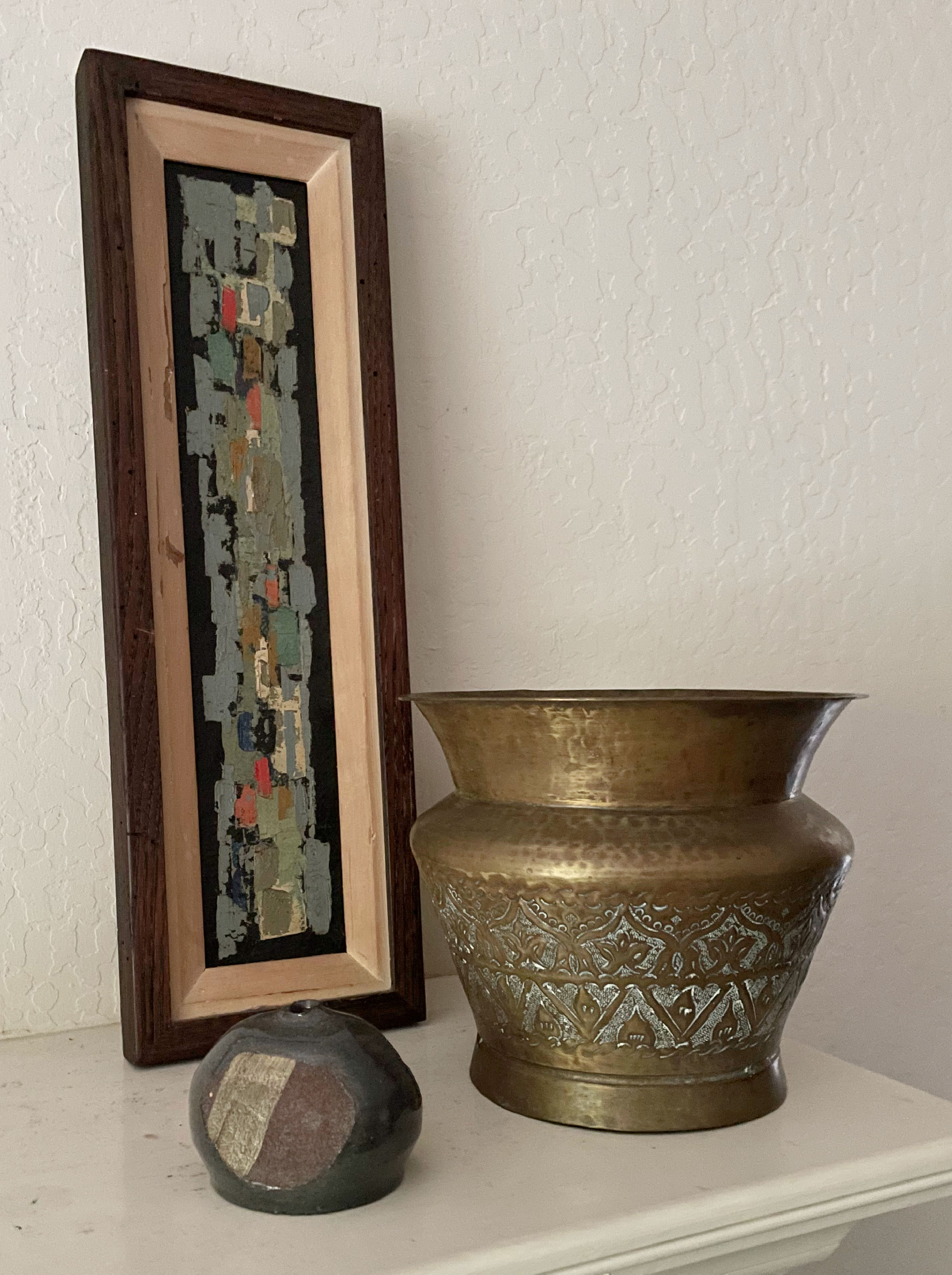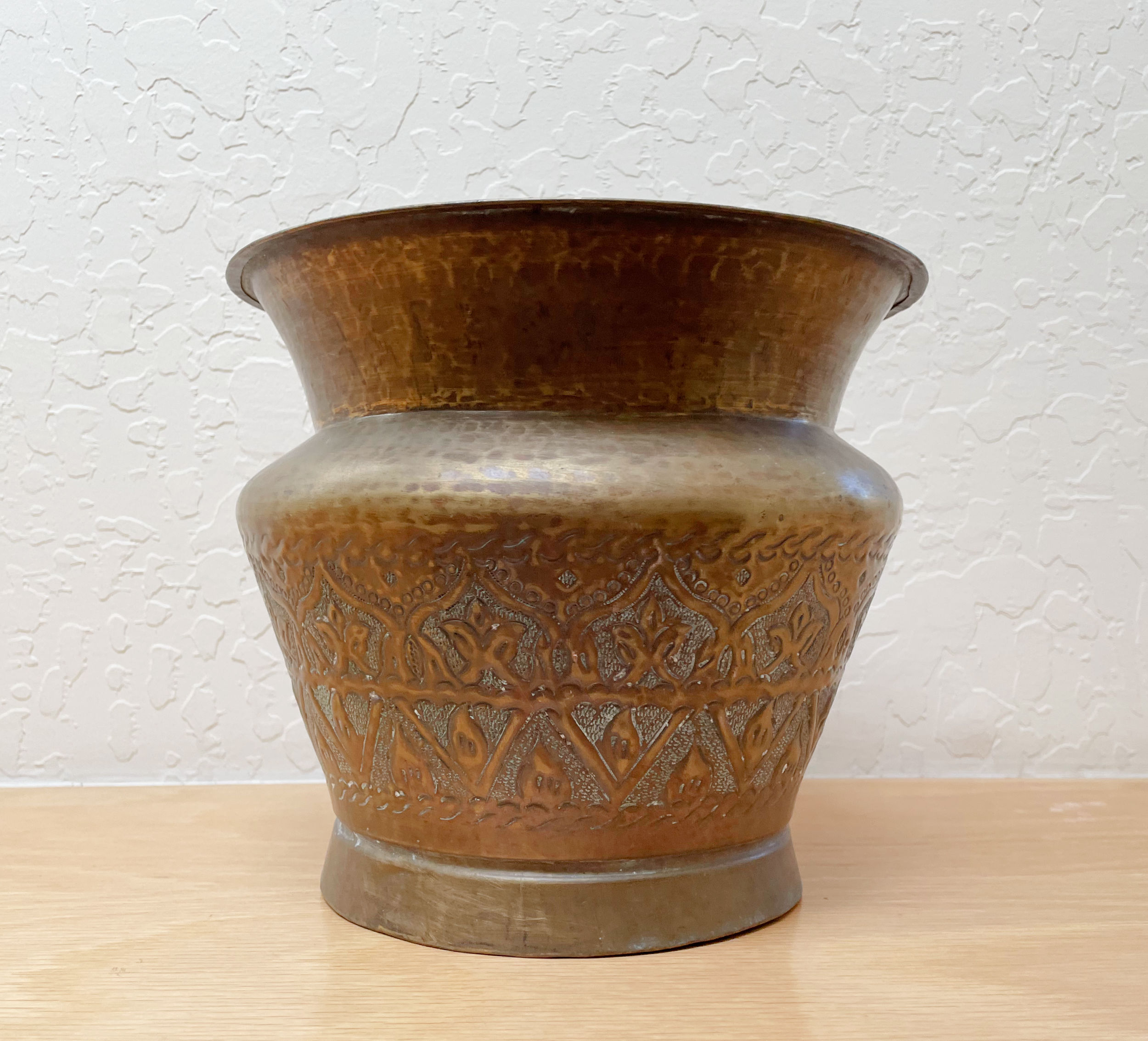 I thought this vintage handmade hammered and stamped brass cache pot was darn fabulous. It’s rusty and crusty inside with a wonderful patina outside. Likely Middle Eastern circa 1930s to 1970s.